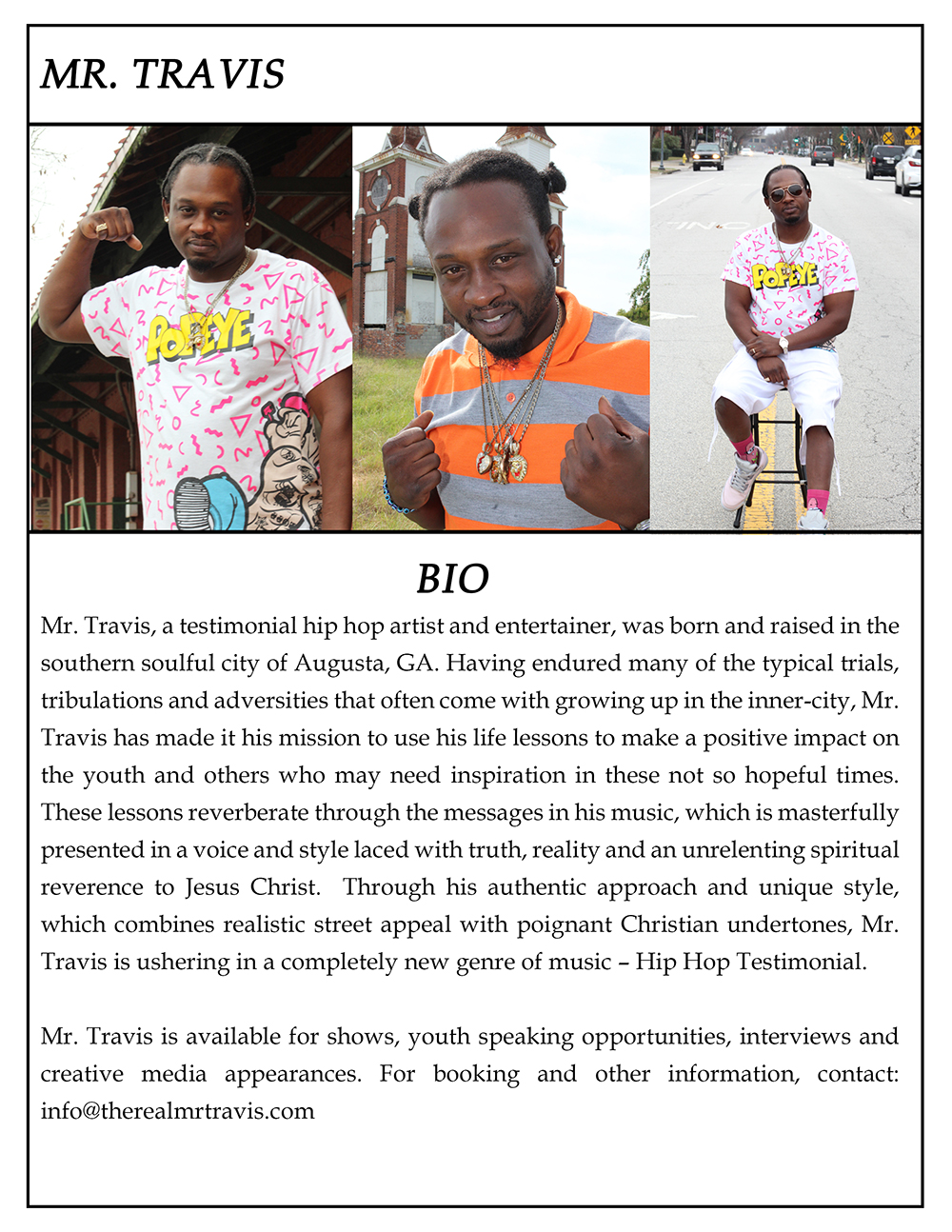 Contact: info@therealmrtravis.com |